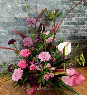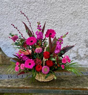 The arrangements below are typical Basket Arrangement designs. Instead of showing you a catalogue of images for you to choose from, we believe that you should choose your colour scheme and allow our florists to create a bespoke bouquet just for you from the best blooms available.